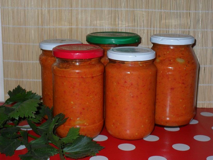 Sós vízben megfőzzük, majd levétől leszűrjük a babot. Közben a lángra helyezett vaslapon vagy sütőben megsütjük a paprikát, a külső hártyáját lehúzzuk róla, majd kicsumázzuk. Az olajon üvegesre pároljuk az apróra vágott vöröshagymát, felengedjük a paradicsomlével, hozzáadjuk a kis darabokra vágott paprikát, a babot, a sóval, összevagdalt petrezselyem zölddel, babérlevéllel ízesítjük. 20 percig pároljuk, üvegbetöltés előtt kidobjuk belőle a babérlevelet. Forrón kisebb üvegekbe töltjük, tetejére olajat öntünk, és lekötjük. Szárazgőzbe (dunsztba) tesszük egy napra.